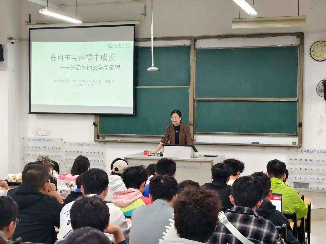 11月23日,我院党委副书记陈科频以“在自由与自律中成长---开启你的大学新征程”为主题,在南区博雅2#301教室为2025级全体新生作专题讲座。本次讲座由辅导员孟雨彤主持。