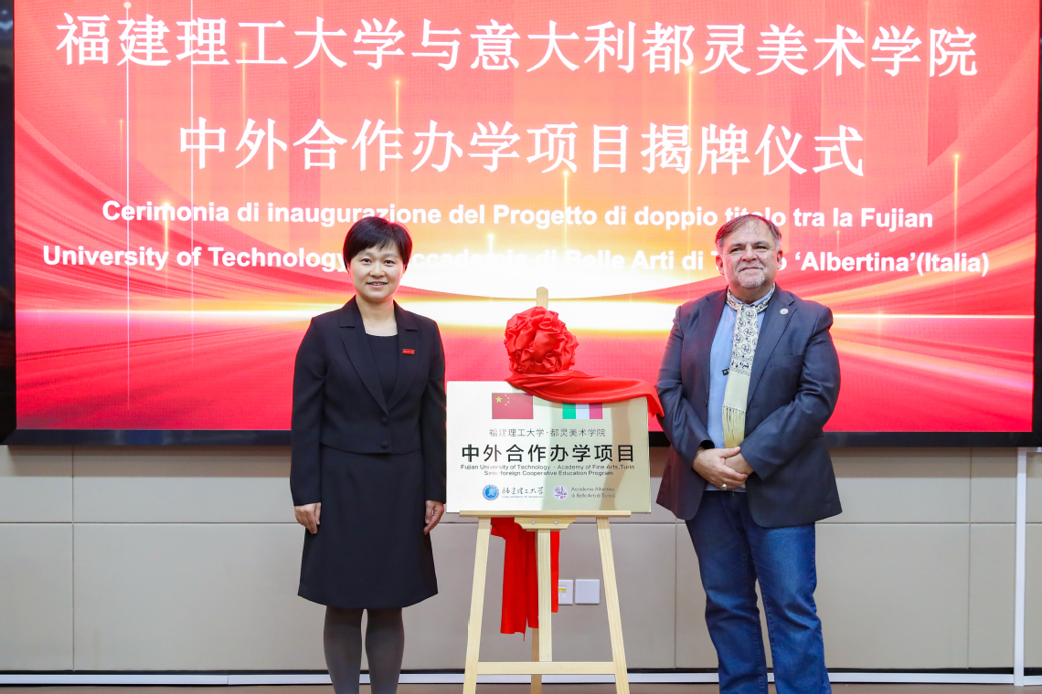 11月17日下午,福建理工大学与意大利都灵美术学院中外合作办学项目揭牌仪式在旗山校区南区举行。都灵美术学院校长Salvatore Bitonti,福建理工大学副校长吴琛出席仪式。学校机关部处、相关二级学院负责人及师生代表参加仪式。