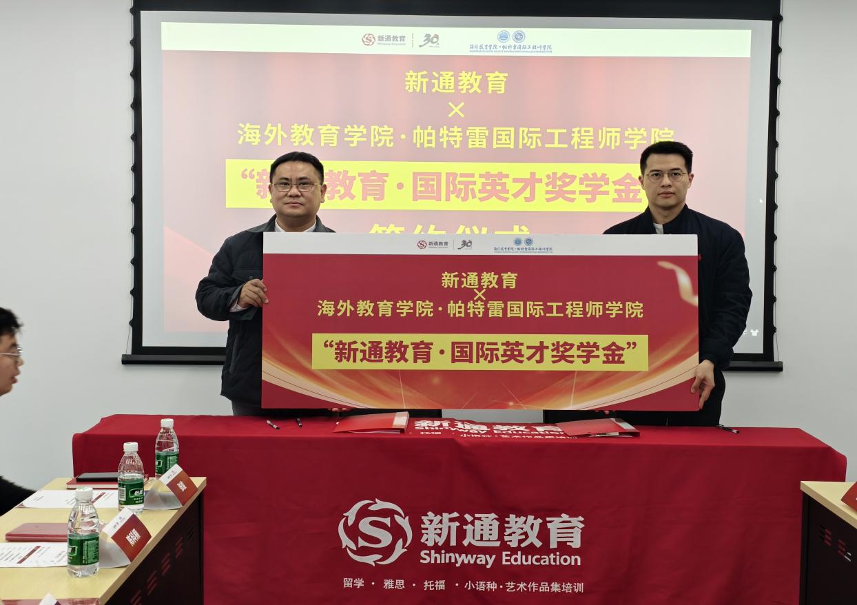 在与会人员共同见证下,双方代表正式签署了“新通教育·国际英才奖学金”协议。仪式结束后,双方围绕人才培养、实习就业、课程共建及岗位拓展等内容开展了务实交流,并就推动进一步合作达成多项共识。